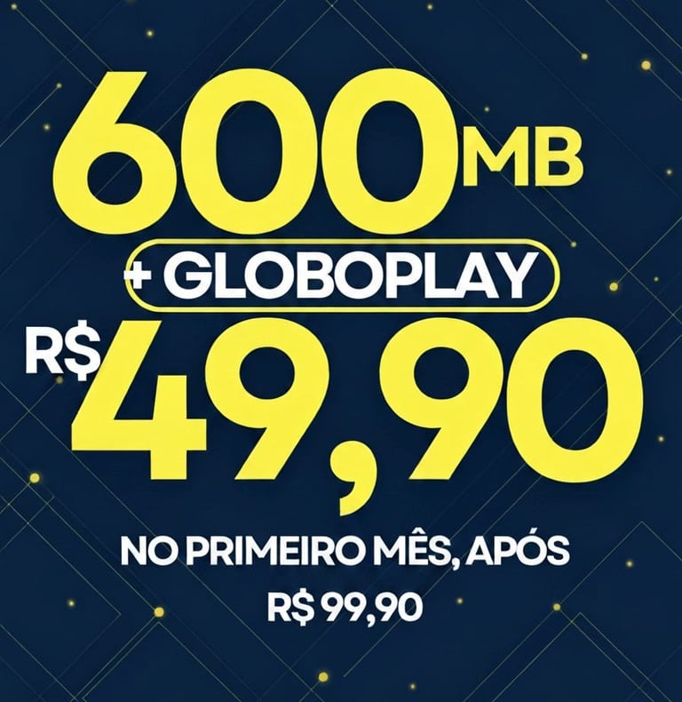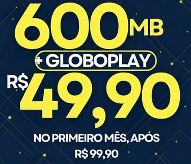 Oferecemos planos de 500mb, 600mb com Globoplay e 700mb.