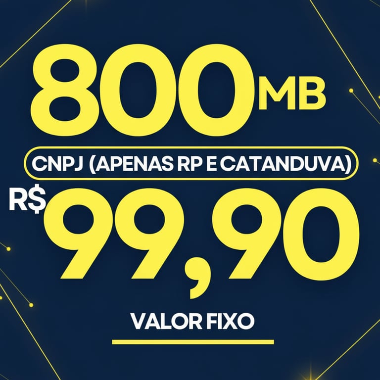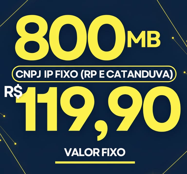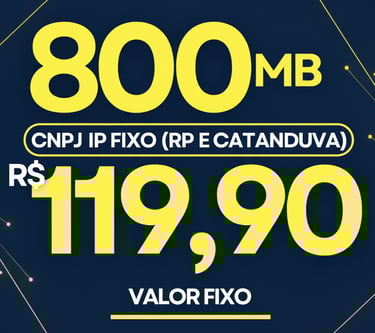 800mb exclusivo CNPJ + IP FIXO por R$119,90