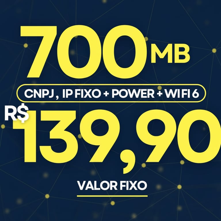 700mb exclusivo CNPJ IP FIXO + Power + WI FI 6 por R$139,90