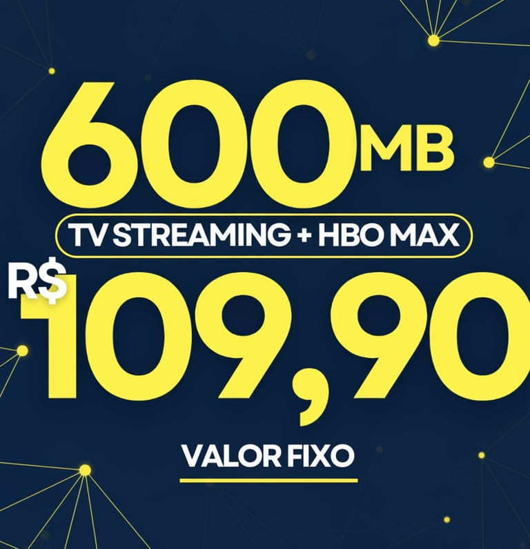 600mb + Tv Streaming + HBO MAX por R$109,90